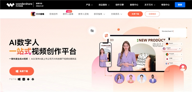 万兴播爆是AI数字人一站式视频创作平台,基于万兴科技20年视频创意和出海实战经验沉淀,结合AIGC、数字虚拟人和短视频制作多元技术打造而成,支持文生AIGC“真老外”数字人视频、个人专属孪生数字人定制、全新形象“外籍模特”数字人定制三种AI创作服务模式,并上线AI智能脚本、AI翻译等功能,为用户带来从脚本、到“真人”出镜、到视频自动生成的“全链路AIGC创作”体验。用户只需简单输入关键词,即可轻松生成真人营销视频,有效解决出海营销视频制作中外籍主播难找、多语言难适配、制作周期长、成本居高不下等诸多难题,赋能跨境营销降本增效。