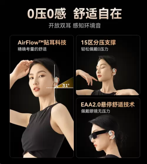 开放式耳机市场的竞争可谓激烈,有如大浪淘沙。在这场行业的演变中,"产品力"无疑成为了决定成败的关键因素。几年前,虽然开放式耳机已经问世,但由于技术的局限性,其音质表现并不理想,无法细致地重现音乐的丰富细节。然而,随着近年来音频转换芯片、传感技术、音场算法等核心技术的日渐成熟,开放式耳机在音质和使用体验上实现了质的飞跃。这些技术上的突破让开放式耳机具备了展示高品质音乐的能力,从而吸引了一大批开放式耳机的忠实用户。