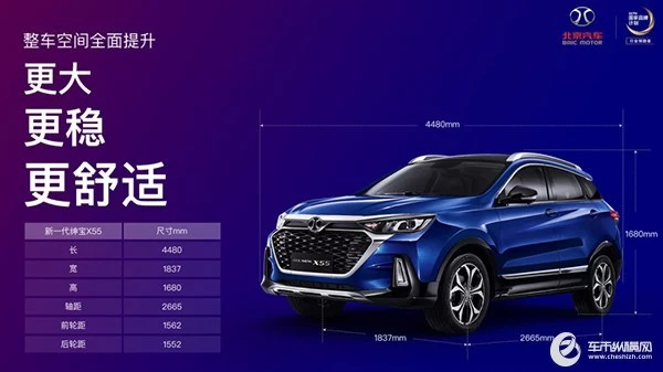 同时,北京汽车新一代绅宝X55整车长4480mm、宽1837mm、高1680mm,轴距2665mm,前后轮距分别为1562mm和1552mm,体量感和乘坐空间显著提升,带给新智一族更为舒适的乘坐感受。
