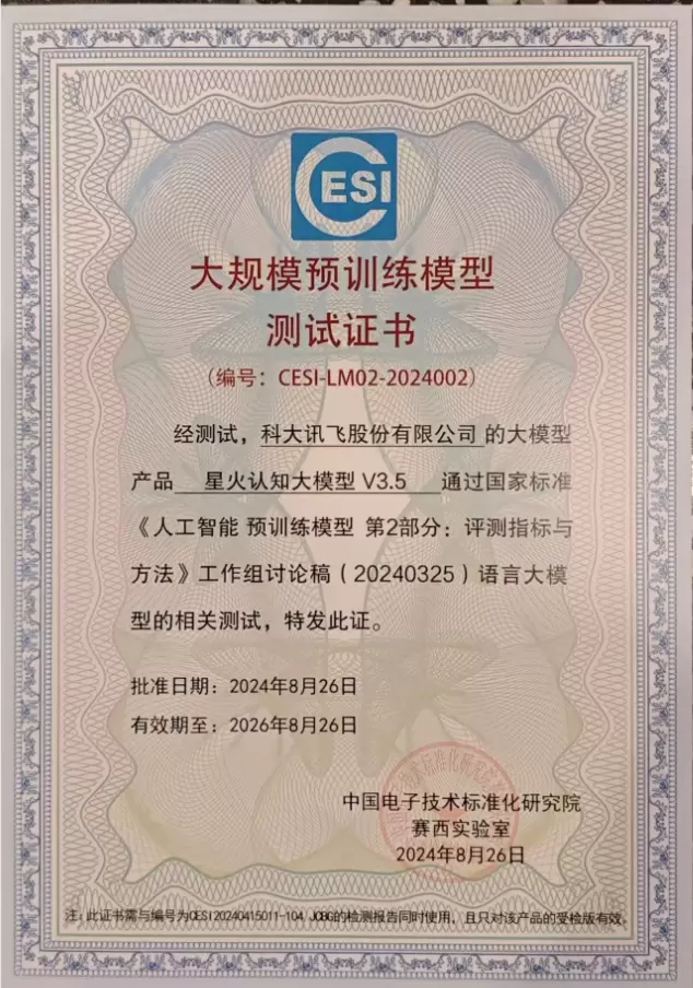讯飞星火首批通过大模型国家标准测试认证