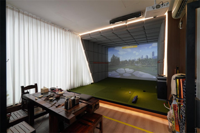 十九洞球馆内,3台国内顶尖的衡泰信室内高尔夫模拟器赫然在列,它们以高科技的力量还原了一百多个真实球场的每一处细节,让球友们无需远行便能体验到世界各地的知名球场。而更为巧妙的是,洪泽华还融入了茶室、水吧、咖啡等休闲元素,营造出一种温馨而雅致的氛围。在这里,人们不仅可以尽情挥洒汗水,还能在品茗小憩间与同行交流心得、碰撞思想火花。
