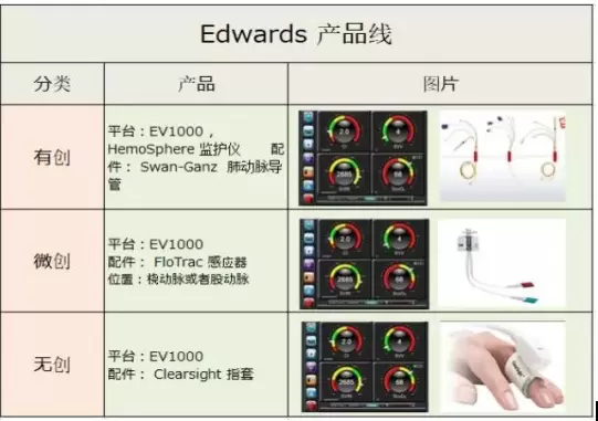 微创监测:相对有创减少对患者的创伤,提高了监测的舒适度和安全性。代表厂家:Edwards Lifesciences、Pulsion。