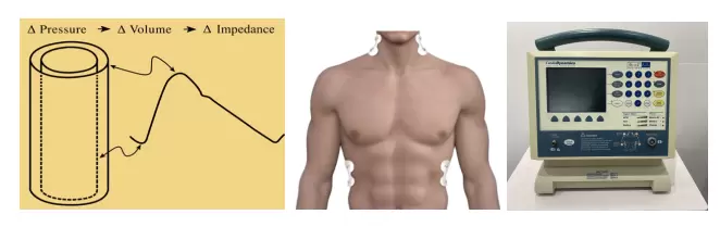 最早的TEB设备是由美国公司CardioDynamics International于1998年研发、生产和销售。于2000年前后进入中国市场。采用的是胸阻抗原理,需在颈部两侧贴电极,当血液从心脏泵出流经胸腔的主动脉时,胸腔的血流量增大,电阻抗减少,以测得主动脉的速度、流量(ΔZ)及 ΔZ 对时间的微积分 dz/dt,经过处理后可提供每搏输出量/每搏输出量指数(SV/SVI)等多个血流动力学参数。