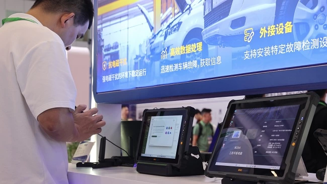 现场观众对高性能三防平板电脑的关注度颇高,尤其是三防平板电脑M10A。三防平板电脑M10A的核心亮点在于其卓越的性能配置,它搭载了高性能处理器,并采用了创新的四选一模块设计,这一组合让M10A在工业自动化、汽车维护、公用事业等多个复杂作业领域中表现出色。无论是执行工业软件的精密仿真、建模与计算任务,还是执行汽车、船舶的高标准检测分析工作,M10A都能以卓越的性能提供坚实的支持,确保作业的高效与精准。