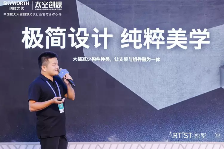 创维光伏品牌部总监助理高晶在会上做产品介绍:作为行业首款原装智造墅式光储产品的“艺墅家”,外观更统一、性能更兼容、品质更卓越、服务更专业。采用AI美学设计,通过AI建模和AI自动排布的睿维4.0AI设计系统,为用户提供一墅一案的定制化方案。” 其中, “墨玉瓦”的BIPV模式顺应建筑本身的外观特点,具有多房型、多场景、高适配的特点,并且炫彩组件可选颜色,展现墅式之美。在AI的加持下,用户通过「ARTIST OS」智慧能源管理系统即可实现“发电数据可视+储能数据可视+负载能耗可视+能源智控”的一站式管理需求。而AI安全保障系统通过五级安全防护系统,为别墅用户营造安心、省心、放心的生活环境。同时,AI运维系统提供黑卡级8星服务,实现365天全时维护,打造舒心的服务感受。