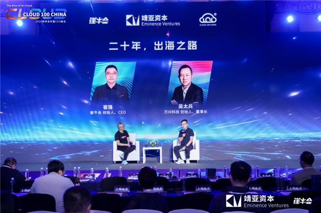 近日,由靖亚资本及崔牛会联合主办的“Cloud 100 China 2024榜单发布暨CEO峰会”在上海成功举办,AIGC软件A股上市企业万兴科技董事长吴太兵受邀担任本次榜单评委嘉宾,并在峰会主场专题分享出海心得。