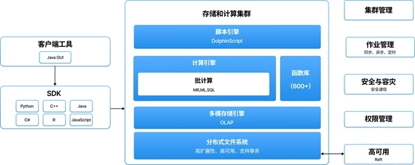 DolphinDB 自设计之初,就已经与传统的数据库有了很大的区别。分布式存储能力与丰富的专业函数库、DolphinDB 自己开发的脚本语言 DolphinScript 融合在一起,形成了一个非常擅长实时数据分析的一站式产品。