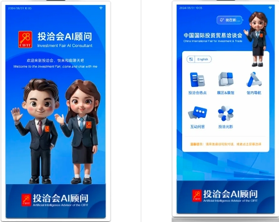 与此同时,为跨越语言障碍,促进不同语言背景用户的沟通,"AI顾问"采用中英文双语服务——女性形象专为中文用户打造,而男性形象则为英文用户设计,让来自世界各地的访客都能享受到便捷高效的服务。