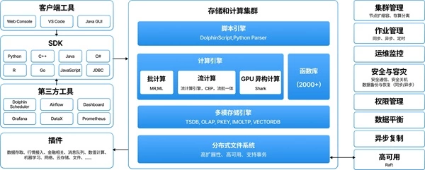 DolphinDB 在每一个能力板块都得到了增强。一个个新功能见证了 DolphinDB 向一个实时计算平台不断演进的过程。我们逐渐完善了多模态存储的概念,从单一的 olap 引擎扩展到现在 olap,tsdb,pkey,imoltp,vector 等5个引擎。计算层面增加了流计算和 GPU 计算 Shark。业务中间件能力得到了极大的提升和扩充,函数个数从 600+ 提升到了 2000+,大量的插件,计算引擎和脚本模块从无到有覆盖了诸多的金融业务。