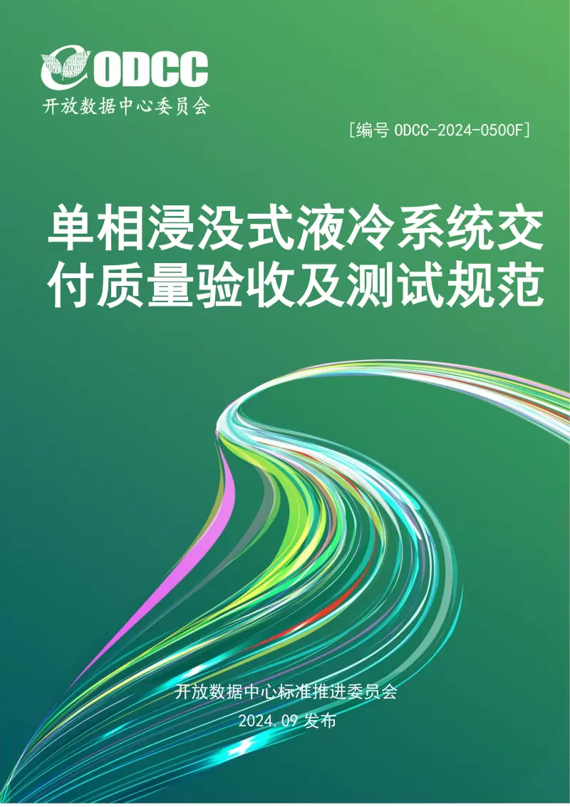 9月3日—4日,开放数据中心委员会(ODCC)主办的“2024开放数据中心大会”在北京成功举办。会上,一项重要成果——《单相浸没式液冷系统交付质量验收及测试规范》(以下简称“验收及测试规范”)正式发布。