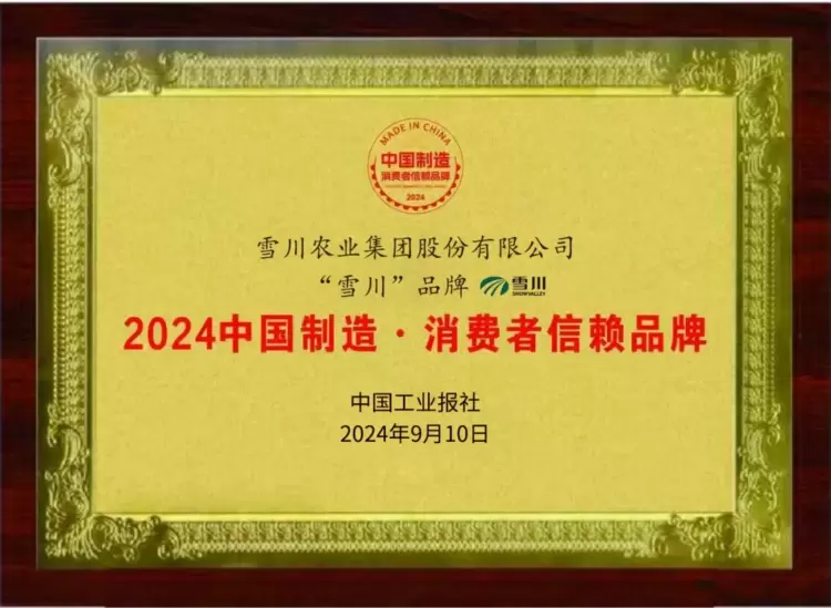 雪川农业集团荣获“中国制造·消费者信赖品牌”