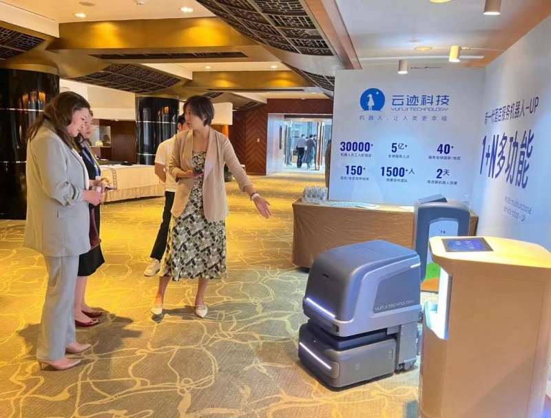 云迹科技工作人员为酒店集团嘉宾现场讲解