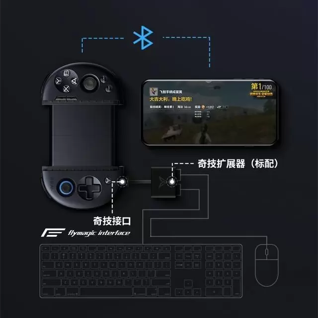 通过Flymagic奇技接口连接键鼠,Wee2变身为键鼠转换器,在此模式下,可以连接键鼠流畅操控手机游戏,横扫吃鸡手游。