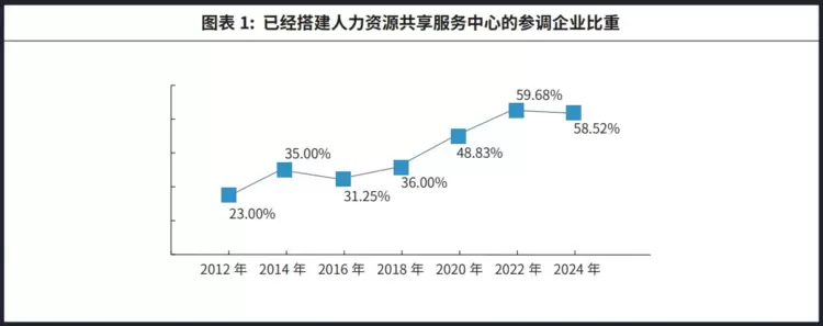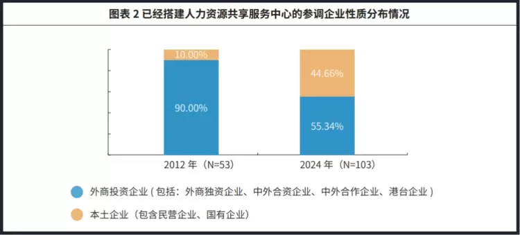 值得注意的是,对比2012年,2024年搭建SSC的本土企业从过去的10%上升至44.66%,人力资源共享服务中心“本土化”趋势明显。