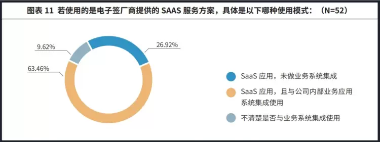 与此同时,大部分使用电子签厂商提供的SaaS服务方案的参调企业,还将电子签应用集成到了公司内部业务应用系统当中。