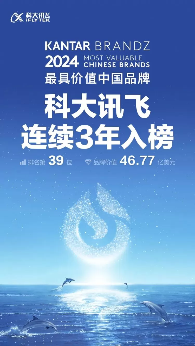 科大讯飞上榜2024凯度BrandZ最具价值中国品牌百强榜第39名