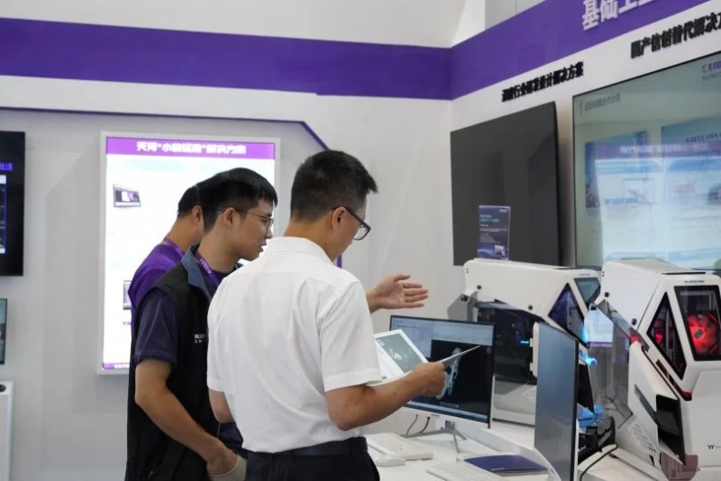 液冷主机上集国产自主、AI 智能、高效便捷、二三维一体的天河 THCAD 研发设计软件正在流畅运行,该软件不仅能完成零件设计、装配设计,还能完成专业的钣金设计,吸引众多参观者驻足体验。天河自主开发的中小企业研发数字化转型解决方案,是以AI加持的天河新一代国产CAD为核心,涵盖三维模型编辑浏览,数字化工艺,产品数据管理等轻量化的软件产品,全面赋能中小企业数字化转型。