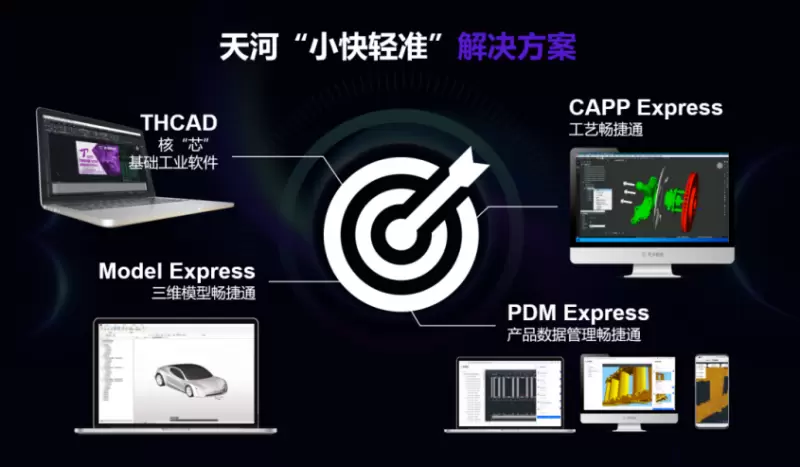 本次带来的解决方案——天河“小快轻准”中小企业数字化研发解决方案包含:THCAD核“芯”基础工业软件,中国机械CAD标准制定者,拥有AI加持的国产CAD软件,让设计效率提升5倍;ModelExpress三维模型畅捷通,作为万能的三维模型编辑器,以1/10的价格为企业非研发部门完成国外3D软件所实现的功能;CAPPExpress工艺畅捷通,全球首款基于世界通用数据格式工具级CAPP产品,减少企业总体拥有成本(TCO)达85%;PDMExpress产品数据管理畅捷通,“云”+“端”一体化的数据管理与协同设计,打通企业内部及外部数据流通,加强各部门团队间协作沟通。整套解决方案全方位解决中小企业数字化转型过程中遇到的人才、数据、技术和资金等方面的问题,为中小企业数字化转型提供经济可行的解决方案。
