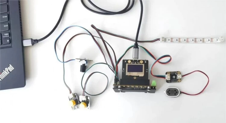 使用行空板信息科技实验盒只需连上电脑,不用额外连线,帮助老师高效开展信息科技课程、提升课堂教学效果。