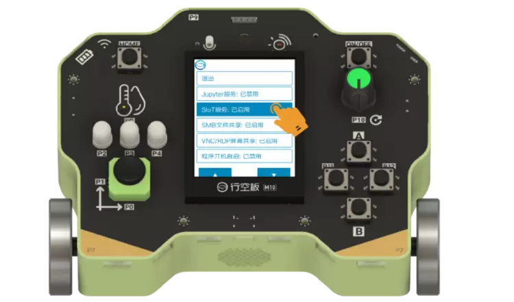 行空板信息科技实验盒内置了锂电池,使用USB线充电,充电完毕,可实现长时间脱机运行。只需打开开关,即可选择程序,方便教师和学生离线演示案例。