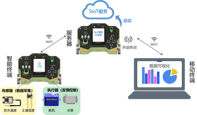 2、行空板信息科技实验盒可一键启动SIoT物联网服务,快速搭建本地物联网系统,方便开展物联网教学。