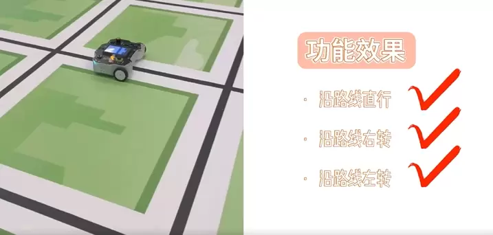 * 功能:机器人沿着路线实现直行、拐弯等动作。