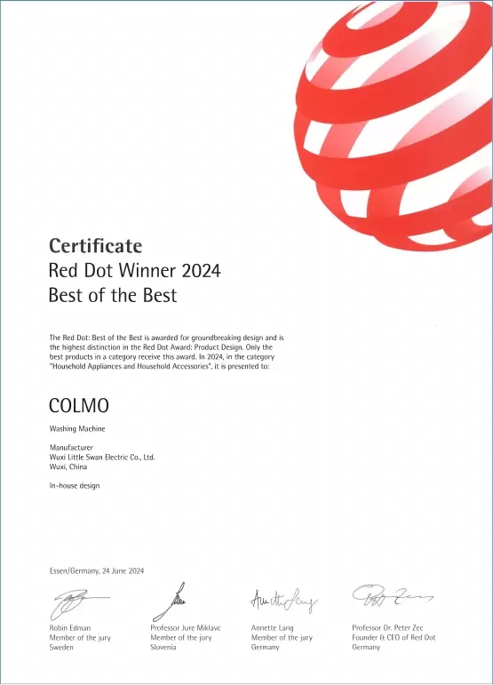 金秋时节,恰逢家装热潮,COLMO新象云璃白洗烘套装脱颖而出,成为众多家庭的优选。值得一提的是,今年6月,德国红点产品设计奖公布了获奖名单,COLMO新象云璃白洗烘套装以其卓越设计与技术创新,荣获设计界的至高荣誉——红点奖“Best of the Best”至尊奖,彰显了COLMO在设计领域的非凡成就与全球影响力。这是继COLMO新象云璃白洗烘套装荣获2024德国IF设计奖荣誉后,再次荣获国际顶级设计大奖。