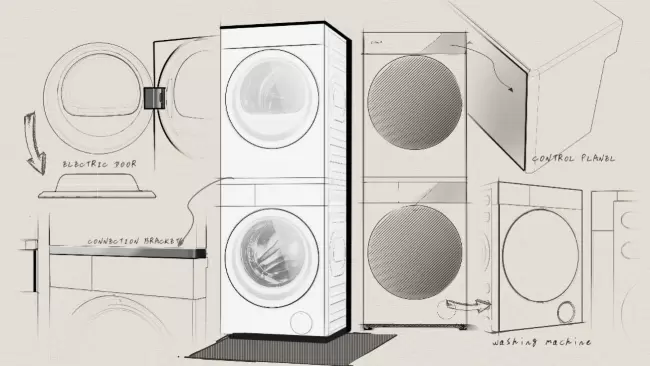 COLMO新象云璃白洗烘套装成功的背后离不开团队的匠心打磨,在长达270天的创新征程中,团队经历15套设计概念的甄选、近200张效果图绘制、4轮手板迭代与用户测试,每一环节都是对设计的精炼与用户理解的深化。比如,针对纯平嵌入要攻克的体验难题——开门问题,设计团队以“一键触摸,电动开门”为核心交互,在操控面板设计过程中,团队需要协调解决玻璃、白色、肤感、显示四者各自的问题与共存的矛盾,最终历经超过50次的玻璃打样和80余种玻璃面板测试,克服了技术与美感的双重挑战,得到了产品的极简美学效果。同时整机聚焦于“最纯粹CMF”,采用哑光云璃白整机覆盖,平衡美观与触感。