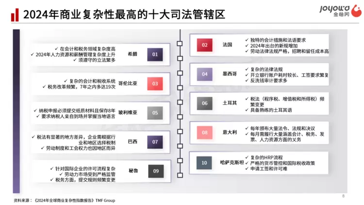 根据出海深度的不同,中企出海可分为出口试水、业务扩张、国际经营、跨国经营和全球经营五个阶段,依次从产品和营销全球化向组织与供应链全球化、团队与资源全球化、品牌与文化全球化发展进阶。当前,中企出海已迈入全球化布局、本土化深耕的新阶段,更注重本土属地化资源整合以及全球供应链协同发展。与此同时,全球营商环境仍面临诸多不确定因素,商业复杂性不减,锚定目标出海区域,还需做好前置性规划。
