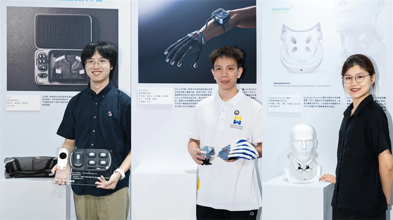 荣获冠军的是同济大学郑青云团队作品——VirtX虚拟触觉服装,该发明为视听觉障碍人群量身设计,通过电触觉渲染技术,使他们通过触觉“感受到”声波。华南理工大学李元靖团队作品CO-JUMP软体康复手套荣获亚军,其结合EMG肌电信号传感器和AI视觉辅助技术的康复系统,为因神经损伤导致手部功能障碍的患者提供康复技术,同时还可与康复医院共享患者数据,实现高效且可持续的病患管理。获得季军的是上海交通大学朱兆鹏团队的作品Dysphagia Dynamics咽韵吞咽障碍康复训练平台,由颈部可穿戴硬件与PSD健康管理软件组成,为吞咽障碍患者提供精准评估与家庭康复训练方案,有效应对老龄化社会下,因脑卒中引起的吞咽障碍病例不断增加的问题。