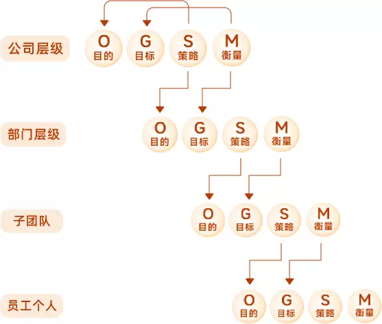 值得注意的是,OGSM与传统目标管理方法OKR/KPI/PBC等并不冲突。在钉钉Agoal里,企业及高管层面可以通过OGSM进行宏观战略的解码,团队和个人层面可以搭配使用OKR/KPI/PBC等工具完成目标的设定与跟踪。