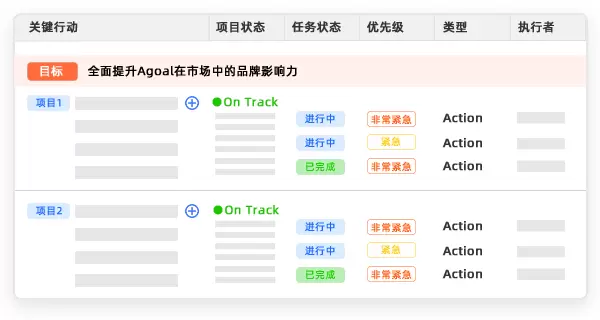图:Agoal 目标里能看到目标关联关键项目的进展