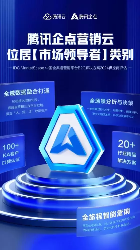 日前,全球领先的IT市场研究和咨询公司IDC发布《IDC MarketScape: 中国全渠道营销平台B2C解决方案2024供应商评估》,腾讯企点营销云位居“市场领导者”类别。