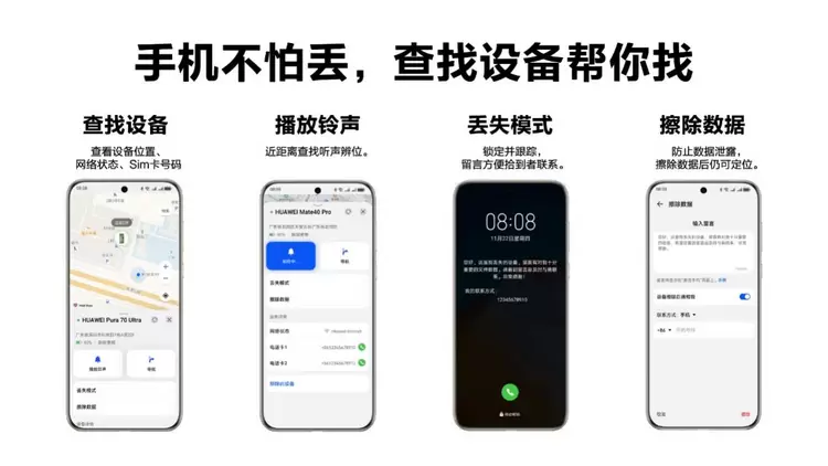 另外,当设备不幸丢失,华为云空间的“擦除数据”功能还可以将遗失设备恢复出厂设置,并永久删除设备及储存卡内的所有数据。若设备处于“离线”(关机或断网)状态时,擦除指令将在下次上线(开机且联网)后生效,最大限度保障使用者的信息安全。