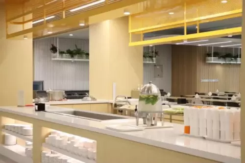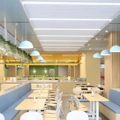 明亮的落地窗延展了通透的视野,现代化简约大气的风格设计,蓝白黄的自然色调贯穿其中,头顶的灯带投射出柔和的光线,生意盎然的绿植随处可见;水果吧台、中西餐区还有餐具传送台的设置功能分明,为学生们的用餐提供了极大的便利;每周的特色菜品由专门的委员进行审核,四季采鲜而食,确保让威雅学子们吃到最健康营养的美食。在常州威雅,点滴之处尽显对学子的关怀。