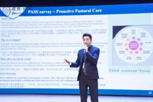 在新生家长会上,执行校长DavidAitchison再一次向学子和家长表明了常州威雅一以贯之的教育愿景,“除了学术之外,我们也更关注全人教育,帮助他们完成自我价值的定义和实现......除了信心,他们还将发展同理心、同情心、耐心和坚韧的信心。”中学校长NigelSchofield别出心裁地将我们的学生以睡莲作比,认为我们和家长的共同努力,会为学生的成长提供稳定的教育生态坏境,让我们的学子如睡莲一般绽放。作为初生的太阳和最稚嫩的希望,小学部和幼儿园的孩子们也将在我们的威雅大家庭里体验到寓教于乐、在玩中学、在学中成长的新体验。
