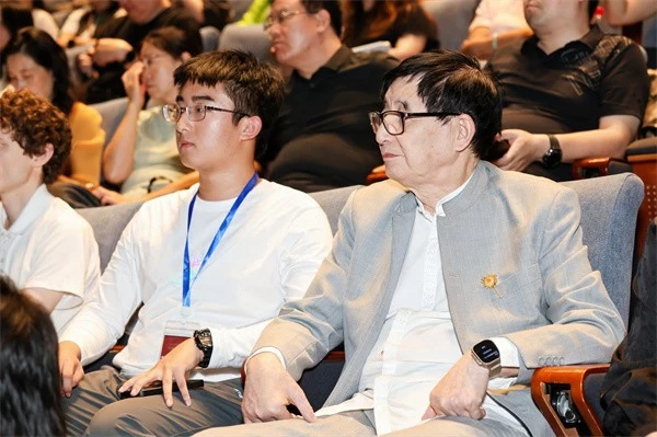 朱炳仁与朱军岷之子朱也天聆听现场讲座
