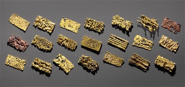 而最令人瞩目的,莫过于朱军岷先生对熔铜艺术的介绍。2006年,常州天宁宝塔突遭大火,朱炳仁在修复佛塔时,意外发现熔铜结晶体如天工造就,铜液自由流畅的形态触发了他的艺术灵性,从而创立了“熔铜艺术”。