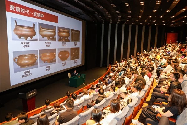 随后,他的话语轻轻一转,带领大家步入了黄铜时代。特别是明代的宣德炉,成为这一章节的重点。他通过对比明清时期不同的铜器文化,展现了明清两代审美趣味的变迁,让听众领略黄铜时代的铜在不同历史背景下的独特韵味。