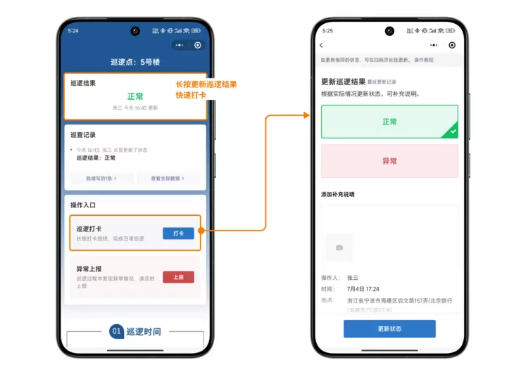 该系统的核心是批量生成的二维码标牌,这些标牌被张贴在园区的各个楼层单元。巡检人员定期巡查,发现违规施工行为,他们只需扫描相应的二维码,即可快速填写违规记录并拍照存档。不仅简化了记录流程,还确保了每一次巡查的结果都能被准确记录在二维码上,形成了一个详细的违规施工档案。有效地提高物业管理的透明度和效率。