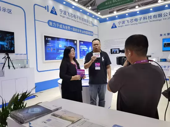 展会首日,飞芯电子CEO雷述宇博士接受了媒体的现场采访。他深入阐述了公司的发展历程、技术优势及未来战略规划,并表达了飞芯电子对光电技术创新与发展的坚定承诺。雷述宇博士重点介绍了相干4D FMCW无人机探测激光雷达及集成光源等系列产品,并对这些产品在自动驾驶、智能交通、无人机侦测等领域的应用前景与市场潜力进行了展望。
