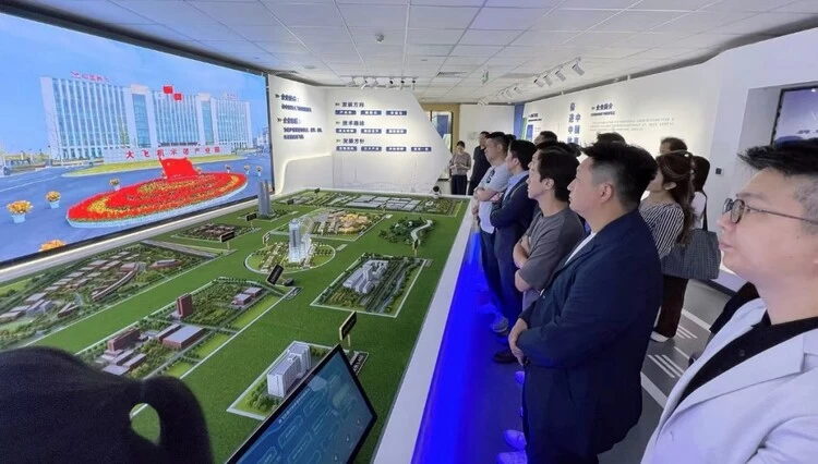 考察团专程参观中国商飞大飞机示范产业园,聆听讲解员介绍国产大飞机C919的先进技术。