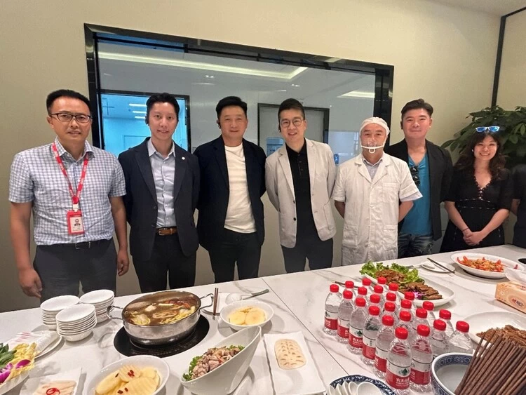 (左起)四川天味食品集团董事兼副总裁于志勇邀请厂商会青委主席兼潮商青委主任史昊洺、餐饮联青委主席兼厂商会青委永远名誉主席黄浩钧、餐饮联主席杨振年等团员,在四川知名企业“天味食品”品尝经典火锅汤料产品。