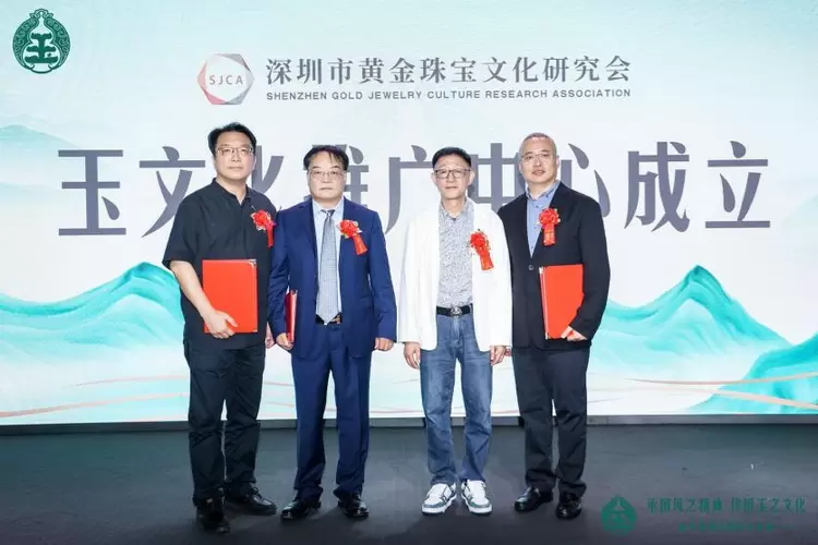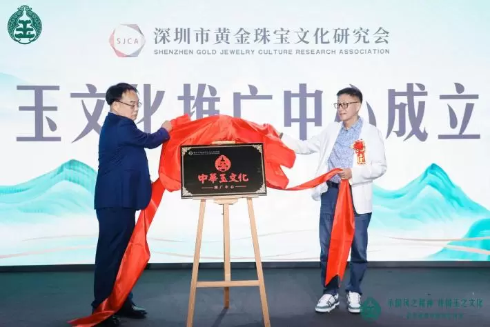 首先由深圳市黄金珠宝文化研究会会长曹阳、西藏国玉珠宝文化股份有限公司董事长刘盛春为深圳市黄金珠宝文化研究会-中华玉文化推广中心揭牌。这一仪式的举行,标志着该中心正式成立,开启了中华玉文化推广的新篇章。深圳市黄金珠宝文化研究会曹阳会长亲自颁发任命书,任命刘盛春和陈汉义、张栋三位杰出人士组成深圳市黄金珠宝文化研究会-中华玉文化推广中心的核心领导团队。