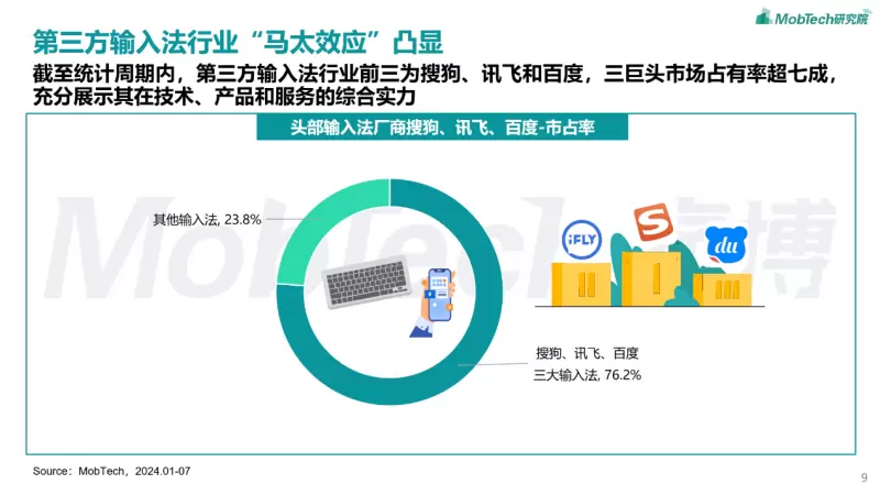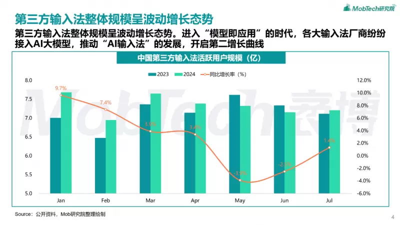 在使用手机原生输入法时,是否总感觉距离“懂我”差一点意思,那么功能丰富的第三方输入法可能会成为你的“心头爱”。近日,MobTech旗下专业的大数据研究咨询机构Mob研究院发布了《2024年中国第三方输入法行业洞察》(以下简称“报告”),分析了输入法行业正借AI大模型迎来第二增长曲线。报告显示,目前第三方输入法整体规模呈波动增长态势;随着AI大模型技术持续赋能,AI输入法作为人机交互的重要桥梁,其功能的增强和用户体验的改善都离不开与AI的深度融合。