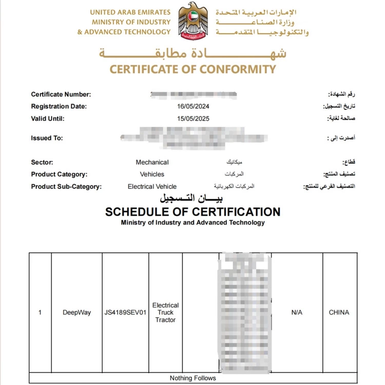 喜讯| DeepWay深向斩获中东关键市场全球首张电动重卡SASO和MOIAT证书