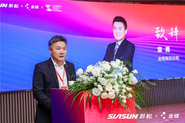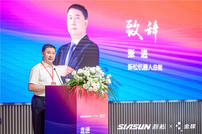 金蝶集团总裁章勇在致辞中表示,数字化是企业高质量发展的一大利器,帮助企业真正实现降本增效,以及商业模式的创新和转型。金蝶与新松在业财融合、管理转型、工业互联网等方面深度合作,一起攻坚克难、携手共进,实现了ERP系统的国产化替代,助力新松实现“4128”成果建设。