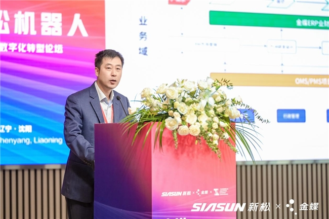 现场,新松机器人总裁张进为论坛致辞。面对全球机器人产业新一轮变革机遇期,机器人企业在坚持自主创新的同时,也必须借助前沿技术和工具,打破传统架构与模式,通过数字化转型实现国产化升级,以迈向高质量发展之路。新松与金蝶团队通力合作、力出一孔,在管理信息化、业财一体化、工业互联网平台建设等方面实现了诸多突破,以金蝶云·苍穹平台为技术底座,以金蝶云·星瀚为应用支撑,打通了系统间壁垒,建设了一体化、智能化、数字化的运营管控平台;通过自主可控和基于云原生架构的企业级云服务平台+EBC管理理念,金蝶助力新松全面替代了国外SAP等ERP系统,解决了在研发、制造、计划、组织等领域的许多“顽疾”,支撑新松按单生产、按项目管理等核心业务运营。