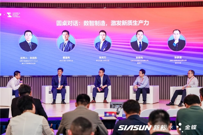 最后,围绕装备制造行业数字化转型、国产化替代、新质生产力、业财融合、价值创造、降本增效、新一代EBC等热点话题,主持人金蝶中国星瀚与EAS Cloud解决方案部副总经理张田彤与曹建伟、张天竹、朱铎先、张家逢等分享嘉宾及现场来宾共同带来了一场精彩的思想碰撞,为装备制造行业如何激发新质生产力、加快推动核心软件自主可控献言献策。