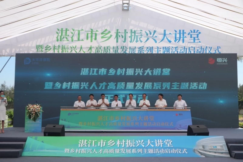9月12日,由广东省农业农村厅、湛江市人民政府、全国工商联农业产业商会指导,由湛江市农业农村局、湛江市科学技术局、湛江市人力资源和社会保障局主办的湛江市乡村振兴大讲堂暨乡村振兴人才高质量发展系列主题活动启动仪式在国家“863”计划海水养殖种子工程南方基地盛大举办。广东省农业农村厅二级巡视员何国威,湛江市人民政府党组成员、副市长吴国雄,湛江市委农办主任、中国太平洋财产保险股份有限公司总经理助理、粤港澳区域协同发展总监、广东分公司党委书记、总经理郁宝玉,湛江市农业农村局党组书记、局长、市乡村振兴局局长莫植贵,湛江湾实验室副主任洪鹏志,恒兴常务副总裁、恒兴研究院院长张海涛,恒兴集团副院长刘永生,广东海洋大学管理学院院长杜军,岭南师范学院商学院院长许抄军,广东生态工程职业学院海洋与渔业学院院长方彰胜等政府领导、专家学者、协会专家、企业代表线上线下1100多人参加活动。